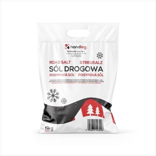 Sól drogowa Handlog 5 kg otrzymywana jest z soli kamiennej na drodze eksploatacji górniczej i przeróbki mechanicznej z dodatkiem żelazocyjanku potasu K4Fe(CN)6 jako substancja przeciwzbrylająca. Przeznaczenie konsumenckie: - do posypywania powierzchni dróg, torów, rozjazdów kolejowych i w innych przypadkach, gdy zachodzi potrzeba usunięcia śniegu, gołoledzi i zlodowaceń.