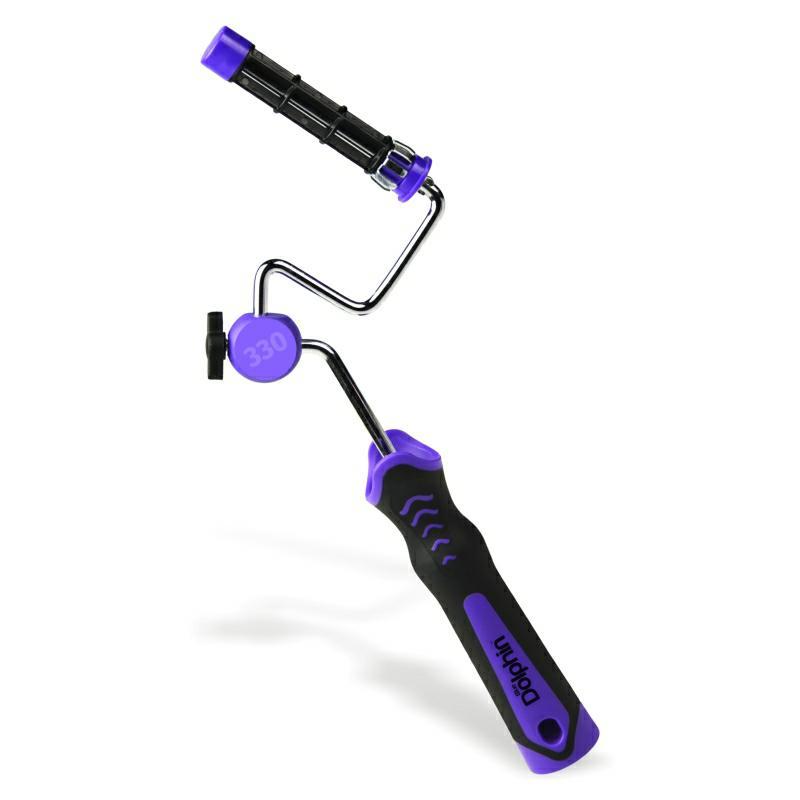 Uchwyt Rotating DolphinRoller System z przegubem rotacyjnym 360 to innowacyjne narzędzie ułatwiające malowanie trudno dostępnych miejsc, takich jak skosy, poddasza czy przestrzenie pod okapami. Wyposażony w trwały, łożyskowany cylinder nylonowy oraz chromowany zatrzask, zapewnia niezawodność podczas pracy. Ergonomiczna, dwukomponentowa rączka gwarantuje pewny chwyt i komfort użytkowania.